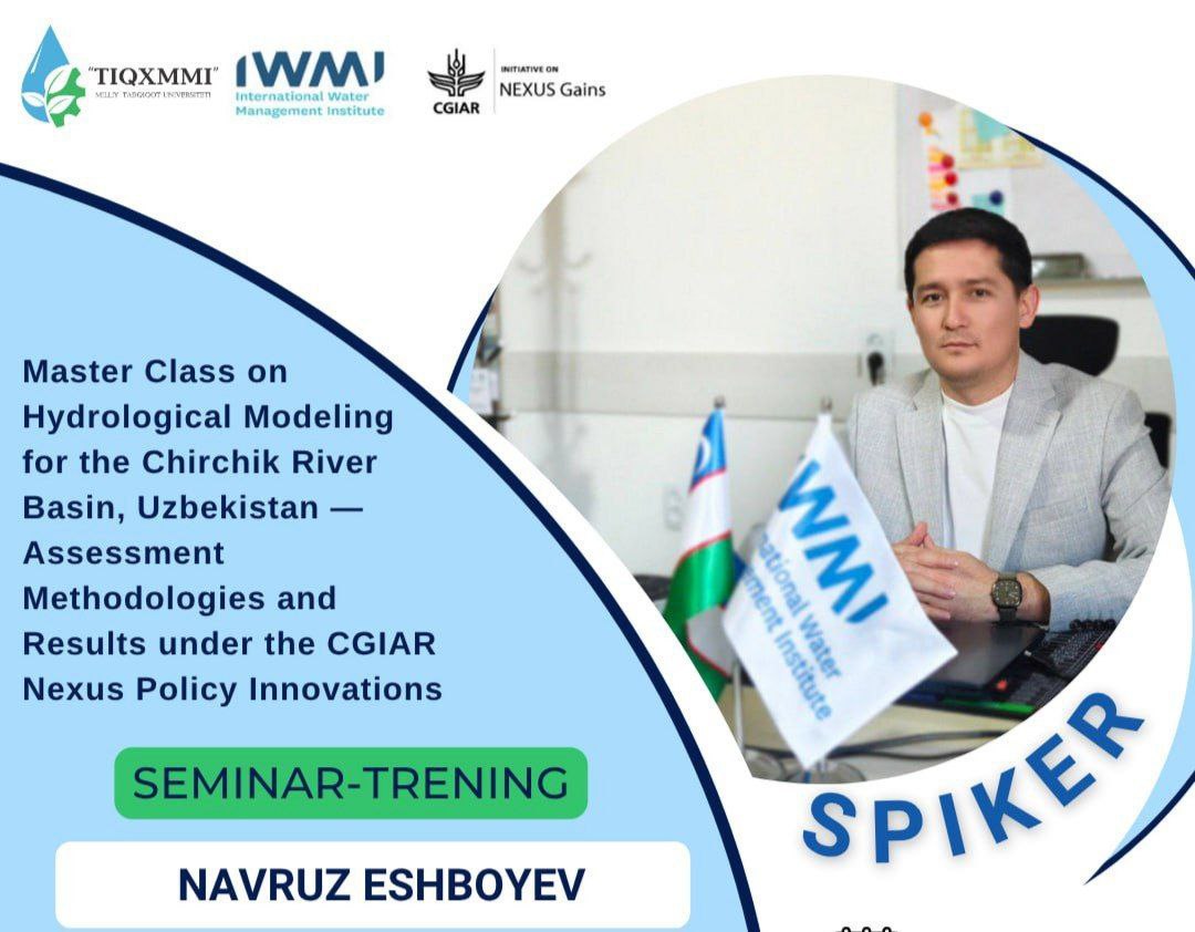 На данном семинаре-тренинге будет представлена информация о "Современных подходах к гидрологическому моделированию в бассейне реки Чирчик, методологиях оценки и последних научных результатах в рамках CGIAR Nexus Policy Innovations."