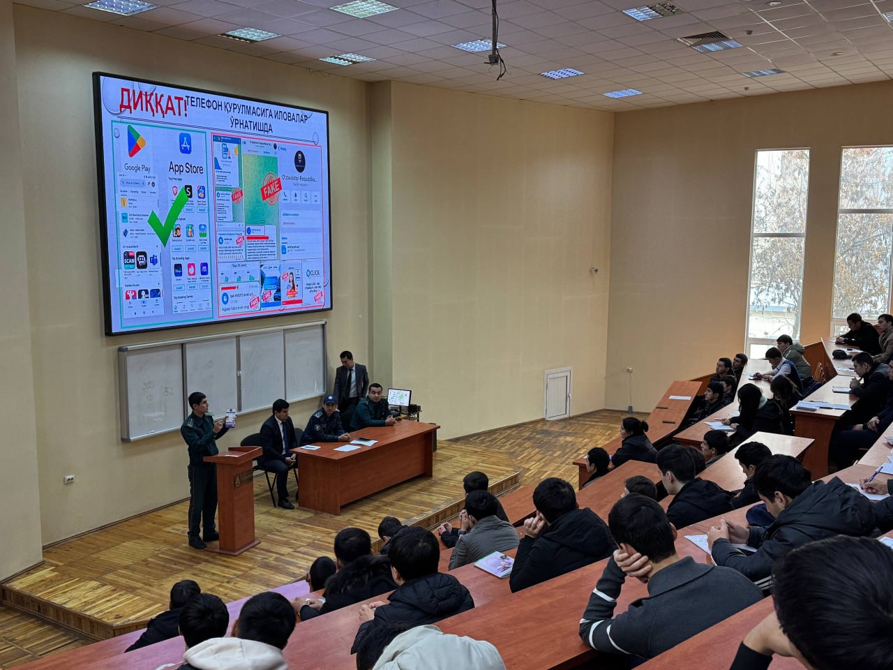 Joriy yilning 11-dekabr sanasida Energetika fakulteti tomonidan yoshlar o‘rtasida sog‘lom turmush tarzini targ‘ib qilish, giyohvandlikning oldini olish va axborot makonida xavfsizlik madaniyatini yuksaltirishga qaratilgan profilaktik tadbir tashkil etildi. Tadbirda Yunusobod tumani 5-son IIB profilaktika inspektori, katta leytenant Jo‘rayev Bobur Tolibjonovich, kiberxavfsizlik bo‘limi katta leytenantlari Mo‘minov Oybek va Ibragimov Boburlar ishtirok etib, mavzular doirasida ma’ruzalar taqdim etdilar. Uchrashuvda fakultet professor-o‘qituvchilari hamda talaba-yoshlar qatnashdi. Ma’ruzalar davomida giyohvandlik vositalarining sog‘liq uchun jiddiy xavflari, ularning ijtimoiy va huquqiy oqibatlari, yoshlarni zararli illatlardan himoyalashda ota-ona, ta’lim muassasalari va jamoatchilikning mas’uliyati haqida batafsil ma’lumot berildi. Shu bilan birga, giyohvandlikning oldini olishga qaratilgan davlat siyosati va amalga oshirilayotgan profilaktik chora-tadbirlar haqida ham tushuntirishlar o‘tkazildi. Shuningdek, kiberjinoyatchilikning zamonaviy ko‘rinishlari — internet firibgarligi, shaxsiy ma’lumotlarni noqonuniy egallash, zararli dasturlar tarqatish va raqamli makonda sodir etilayotgan boshqa huquqbuzarliklar bo‘yicha batafsil ma’lumotlar taqdim etildi.