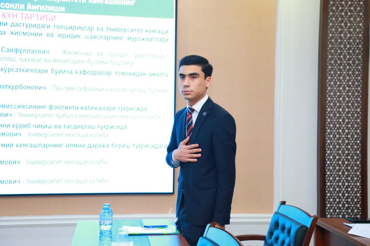 2025-yilda esa universitet rektorining tashabbusi bilan universitet Kengashida yoshlarning doimiy vakilligi tizimi rasman joriy etildi. Ushbu muhim islohot rektor tomonidan chiqarilgan ikkita alohida buyruq orqali huquqiy jihatdan mustahkamlab qo‘yildi.