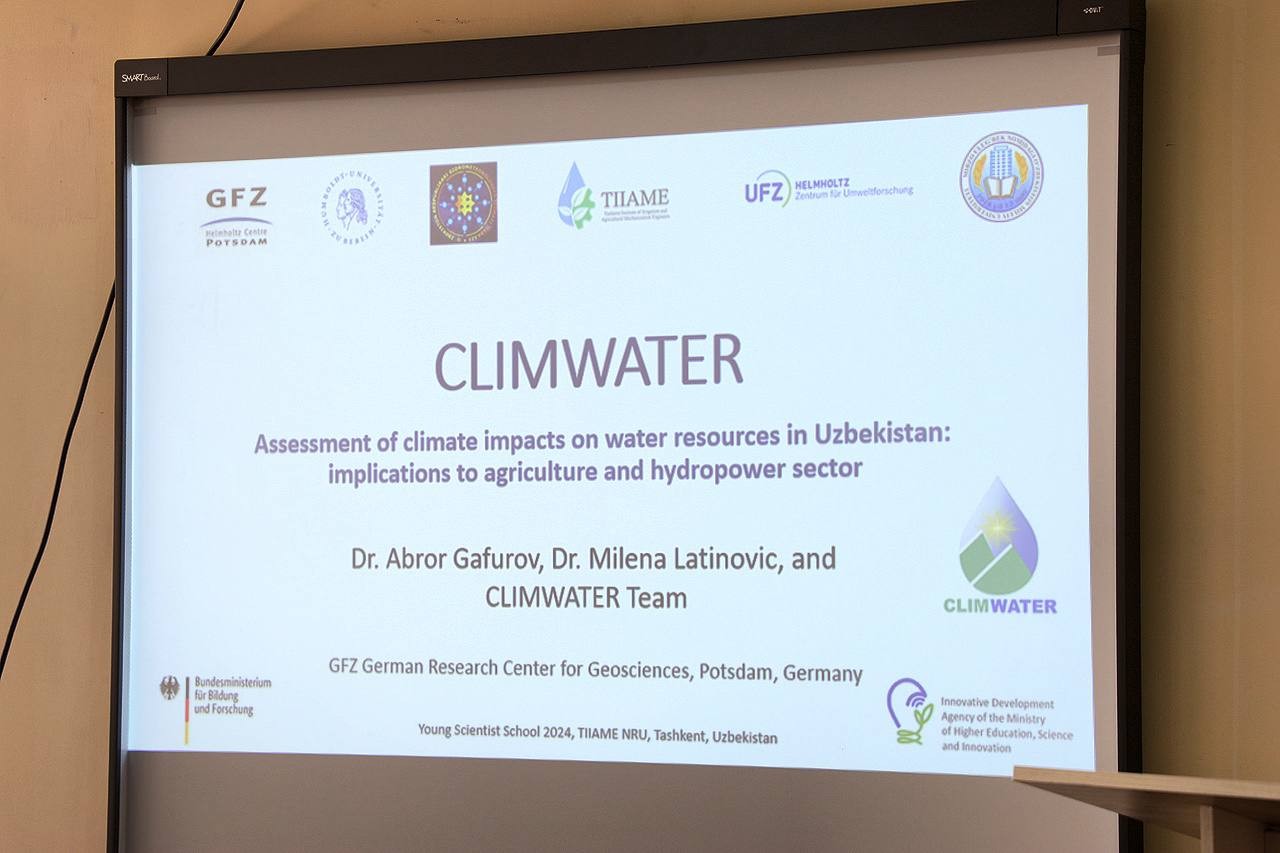 The Young Scientist School 2024 took place on 29–31 July 2024 at the Tashkent Institute of Irrigation and Agricultural Mechanization Engineers – National Research University (TIIAME-NRU) in Tashkent, Uzbekistan. The event was organized within the framework of the German–Uzbek international project CLIMWATER (https://www.cawa-project.net/ ), which focuses on assessing climate change impacts on water resources. The school brought together young researchers from different universities and research organizations to improve their knowledge in hydrology, climate science, and water-resource management (https://tiiame.uz/news?id=6674).