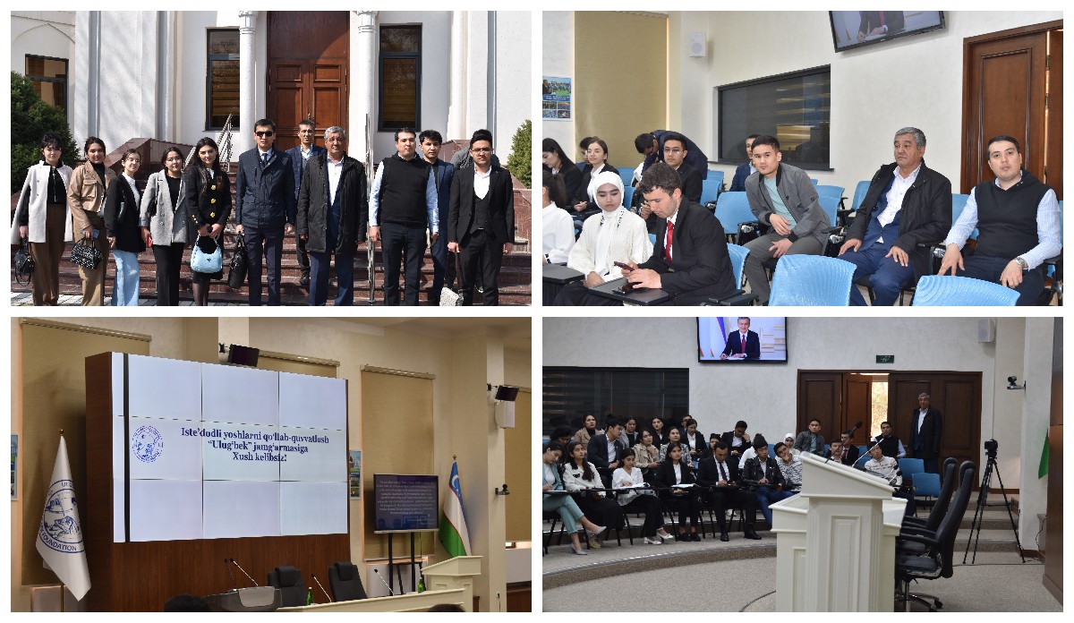 2024 yil 4 aprel kunisoat 10:30 da Oliy ta’lim, fan va innovatsiyalar vazirligi hamda Iste’dodli yoshlarni qo‘llab-quvvatlash “Ulug‘bek” jamg‘armasi tomonidan Jamg‘armaning ma’ruzalar zalida jamg‘armaning raisi Salimov Oqil Umurzoqovich hamda O‘zbekiston Yozuvchilar uyushmasi raisining birinchi o‘rinbosari Hojimatov Minhojiddin Mirzajonovichning “Yashil makon-tabiat va inson uyg‘unligi muvozanati” mavzusidagi ma’ruzalari bo’lib o’tdi.