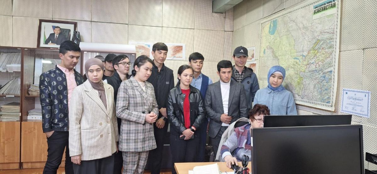 Joriy yilning 16-aprel sanasida "Gidromelioratsiya" fakulteti “Gidrologiya va Gidrogeologiya” kafedrasi o‘qituvchisi B.X.Karabayeva boshchiligida “Daryo va suv omborlari gidrologiyasi” ta’lim yo‘nalishi 3-bosqich 307-guruh talabalari bilan birgalikda O‘zgidromet markaziga tashrif buyurishdi. Tashkil etilgan ekskursiyadan maqsad talabalarga ushbu markaz va uning vazifalarini tanishtirish bilan qatorda hozirgi semestrda o‘qitilayotgan “Global iqlim va suv ta’minoti” fanining dolzarblik masalalarini tushuntirishdan iborat edi. Talabalar mazkur tashrif davomida markaz mutaxassislari tomonidan berilgan ma’lumotlarni hamda soha bo‘yicha o‘zlari qiziqqan savollarga javoblarni olishdi.