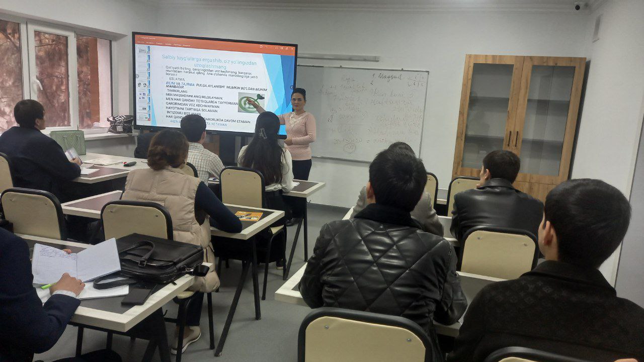 2025-yilning 24-fevral kuni “O‘zbek tili va adabiyoti” kafedrasiga tegishli “Shaxsiy kamolot” to‘garagi rahbari M.A.Qo‘shnazarova to‘garak ishtirokchilariga “Baham ko‘rish” mavzusida seminar trening tashkil etdi. Unda talabalar bugungi kunda o‘zlari uchun foydali bo‘lgan bilim va mashg‘ulotlarni yaqin do‘stlari bilan baham ko‘rish, shuningdek, zavqini his qilish hamda “har kuni bir foizga yaxshilanish” harakatini tushunib yetishdi. Muhimi esa katta maqsadlar qo‘yib, qaror qilish, harakatga tushish va barqarorlikni ta’minlashdir. Zero, qaror, reja, harakat va muntazamliklik manzilga yetishning asosiy omillaridan biridir.