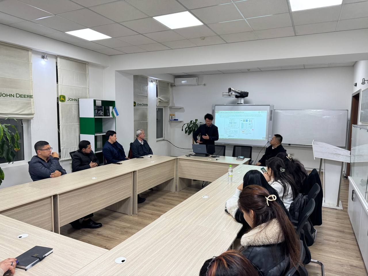 Tashrif davomida professorlar hamkorlikdagi ilmiy loyihalar bo‘yicha ishlarni amalga oshirish bilan birga, 70810101-Qishloq xo‘jaligini mexanizatsiyalashtirish mutaxassisligi magistrlari va doktorantlarga ma’ruzalar ham o‘qishdi. Jumladan, professor Xu Mao “Research on Detection of Grain Moisture Content and Moisture Distribution Based on Microwave Technology” va “Electro-hydraulic Derived Precise Plant Spacing Control System for Potato Planter” mavzularida hamda professor Wu Chao “Research on the mechanism of soil-touchdown component interaction under soil property differences” va “Research and Practice on Key Technologies and Equipment for Digital Cotton” mavzularida ma’ruzalar o‘qishdi.