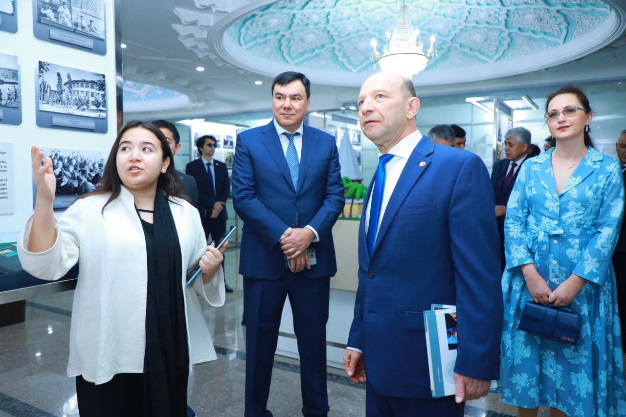 Tashrif doirasida mehmonlar universitetning tarix muzeyi bilan yaqindan tanishdilar hamda oliy ta’lim muassasasi faoliyati, ilmiy salohiyati va xalqaro hamkorlik yo‘nalishlari haqida ma’lumot oldilar.