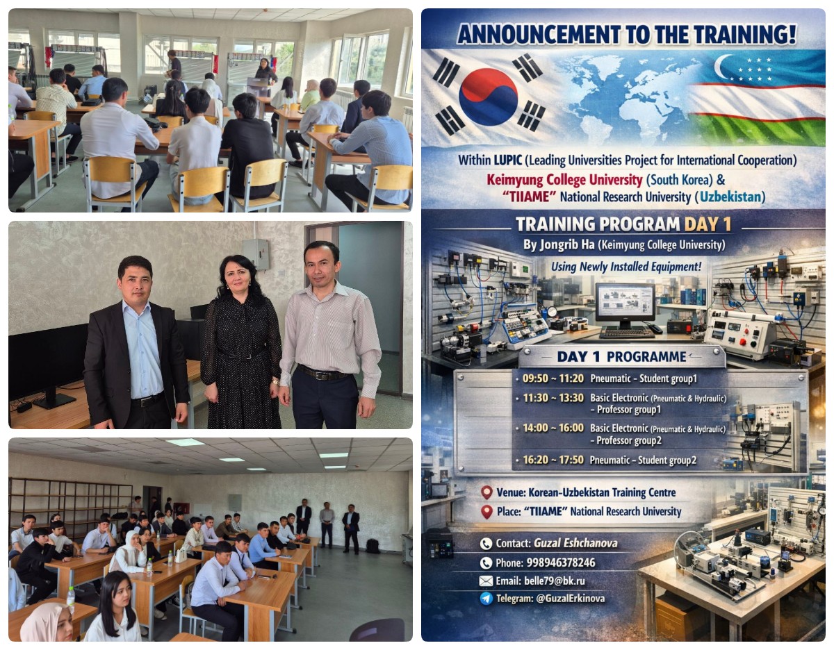 Joriy yilning 1 Aprel sanasida “Toshkent irrigatsiya va qishloq xo‘jaligini mexanizatsiyalash muhandislari instituti” Milliy tadqiqot universitetida LUPIC (Leading Universities Project for International Cooperation) xalqaro loyihasi doirasida muhim amaliy trening dasturi tashkil etildi.